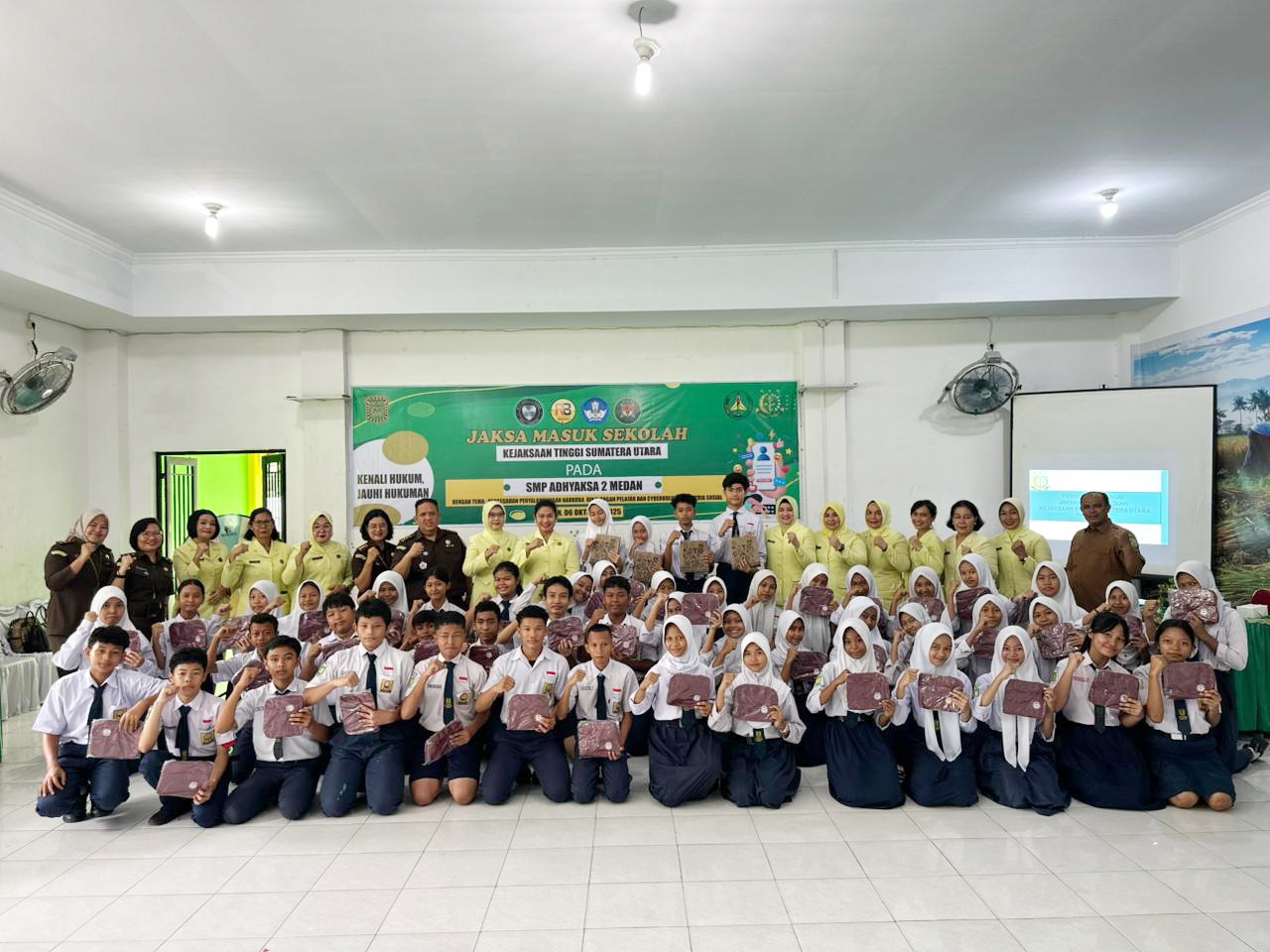 Diakhir acara, Ketua IAD Sumatera Utara beserta jajaran pengurus turut memberikan cendramata kepada anak didik yang disambut Kepala Sekolah SMP Adhyaksa 2 Medan Armen, Spd.,M.Pd bersama jajaran dengan ucapan rasa terimakasih dan apresiasi setinggi-tingginya atas bimbingan dan arahan Ketua IAD Wilayah Sumatera Utara serta berharap agar pelaksanaan penyuluhan hukum tersebut dapat berguna dan bermanfaat bagi keberlangsungan pembinaan taat hukum pada siswa/siswi di lingkungan sekolah Adhyaksa Medan.