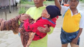 Aksi Heroik Bhabinkamtibmas Polsek Firdaus di Tengah Banjir Sergai