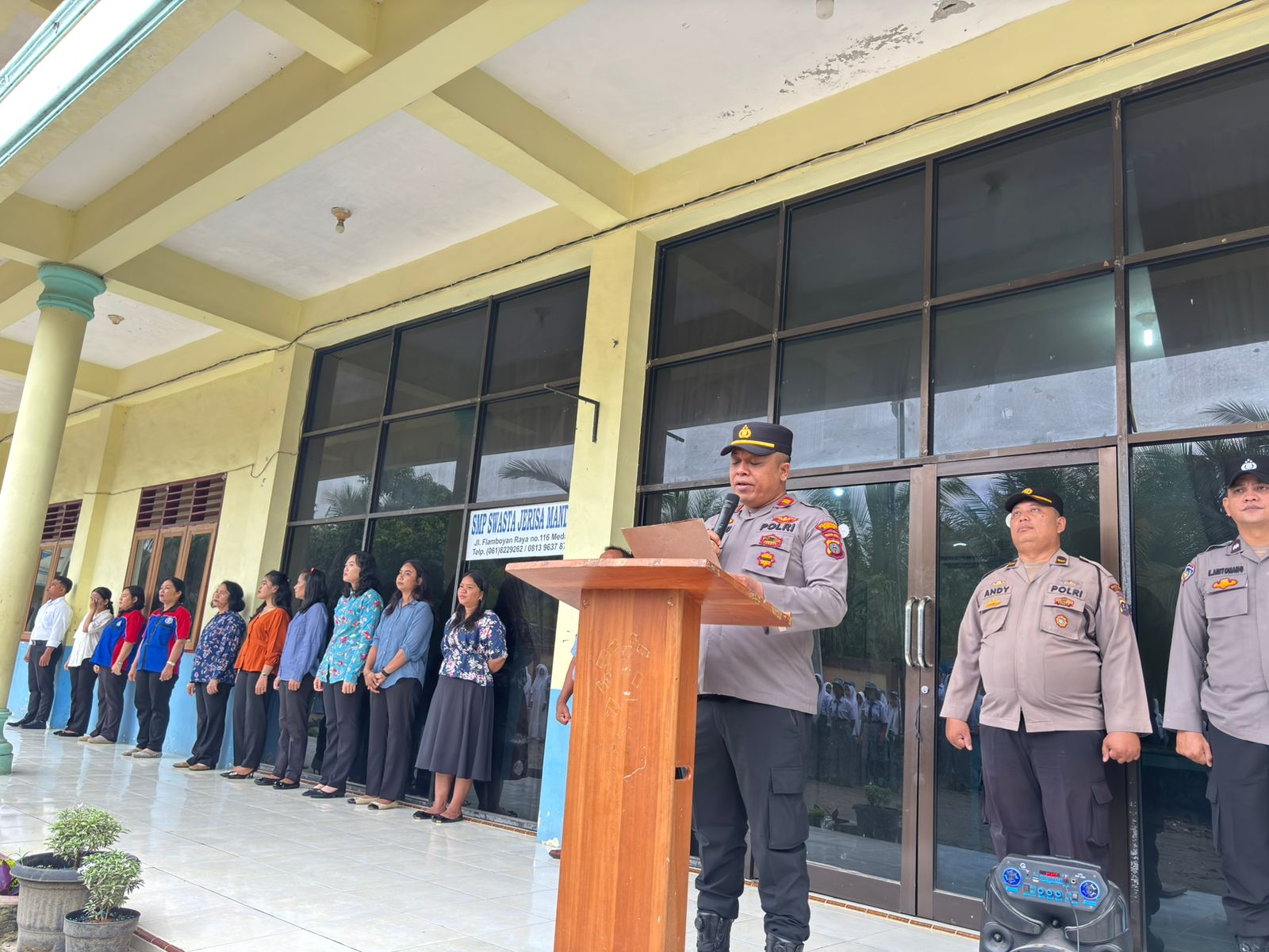 Selain itu, Kapolsek juga mengingatkan pentingnya disiplin, tanggung jawab, dan pembentukan karakter yang baik dalam kehidupan sehari-hari di sekolah maupun di luar lingkungan pendidikan.