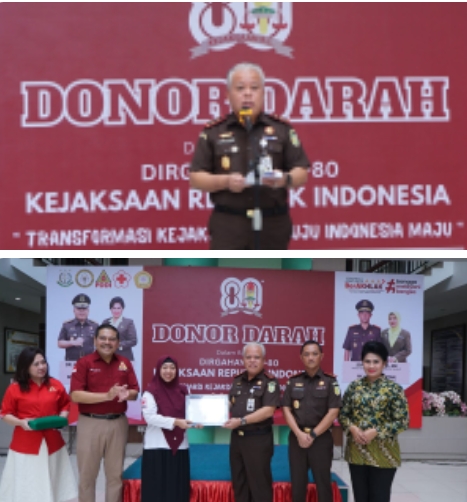 Bedahkasus.com, Medan -Dalam rangka menyambut hari lahir (HARLAH) Kejaksaan R.I ke-80 tahun 2025, Kejaksaan Tinggi Sumatera Utara melaksanakan bhakti sosial dengan menggelar donor darah bagi seluruh pegawai Kejaksaan Tinggi Sumatera Utara yang dilaksanakan di Adhyaksa Hall lantai I Kejati Sumut Jalan Jend Besar AH Nasution No.1C Medan.