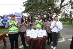 Sebelum pembagian dimulai, personel Satlantas lebih dahulu melakukan pengaturan arus lalu lintas guna memastikan situasi tetap aman dan terkendali