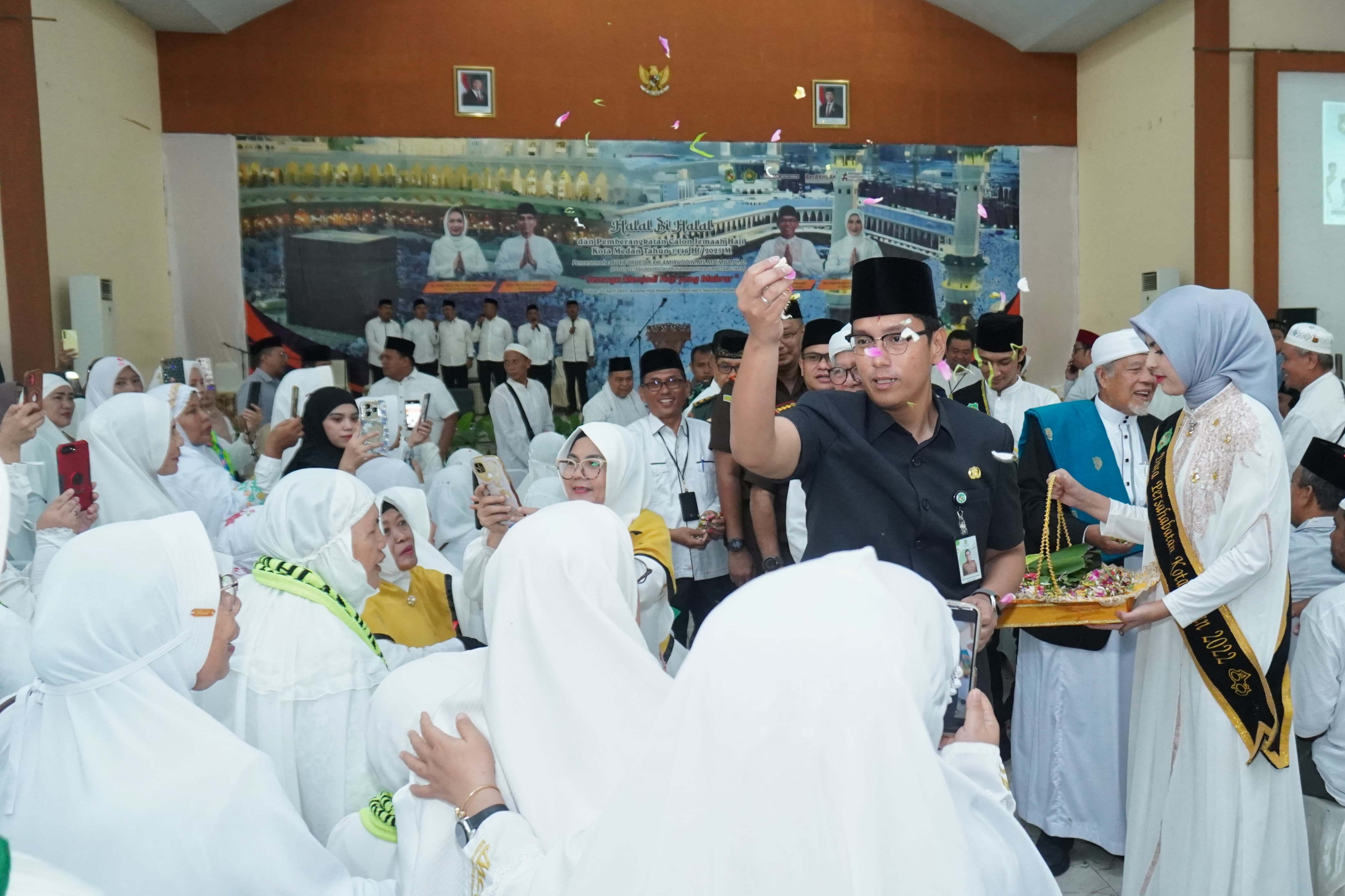Tepung tawar ini dilakukan Wali Kota Medan Rico Waas pada acara halal bihalal sekaligus pemberangkatan Calhaj Kota Medan tahun 2025 yang digelar di Asrama Haji Medan, Selasa (22/4/25). Hadir dalam pertemuan tersebut, Kakankemenag Impun Siregar, Ketua MUI Kota Medan Hasan Matsum, segenap Stakeholder, Pimpinan Perangkat Daerah, Camat dan Lurah.